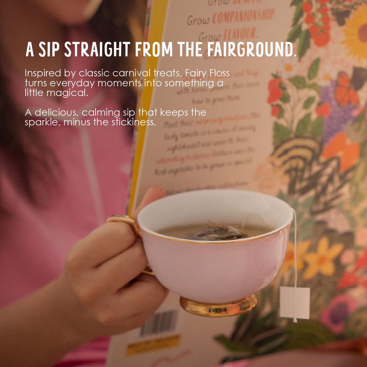 The sweetest way to add a sprinkle of wonder to their day. Made with naturally caffeine-free botanicals and a swirl of strawberry and vanilla, Fairy Floss turns ordinary tea time into something extraordinary.