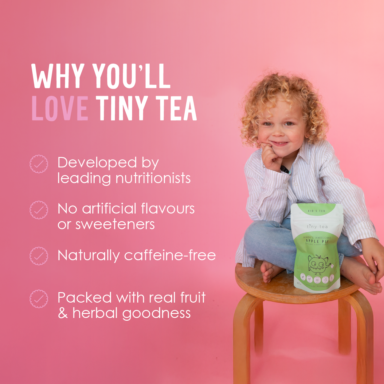 Our #1 bundle loved by mums and little tea lovers. With all four best-selling flavours, it’s the easiest way to make tea parties, lunchboxes and bedtime sips fun. Real ingredients, fruity flavours, no nasties, just pure joy in every cup.