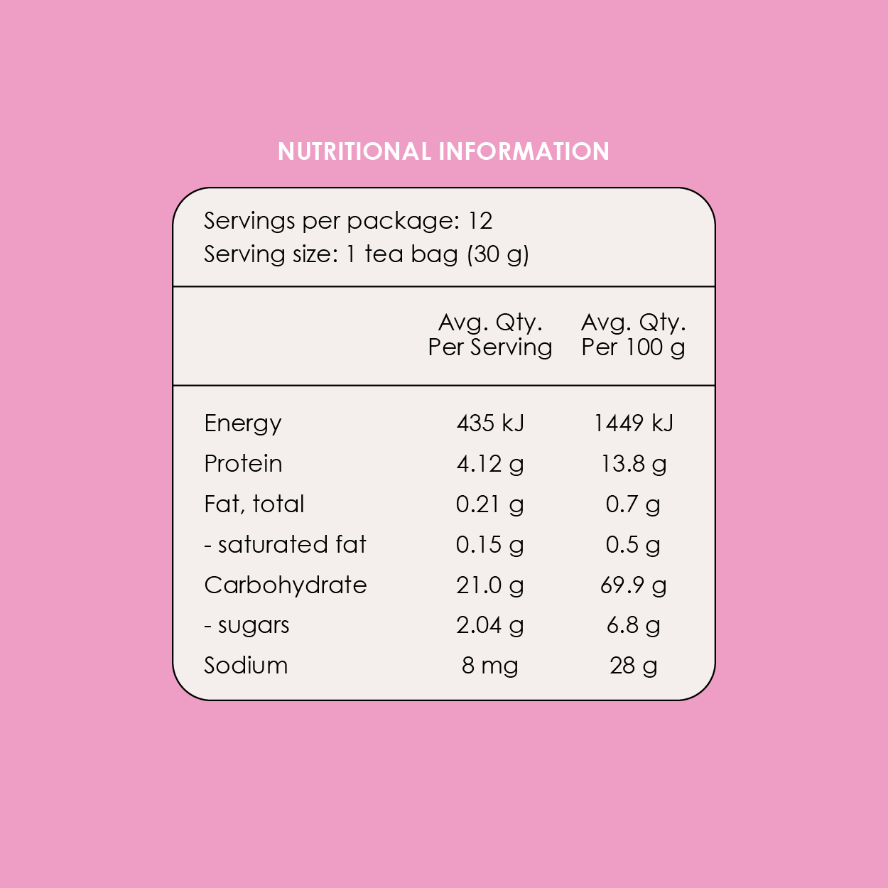 • Our tea bags are made from corn starch fibres that are 100% biodegradable! No microplastics here—just pure goodness.